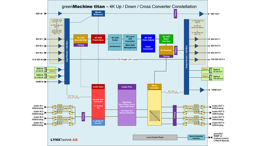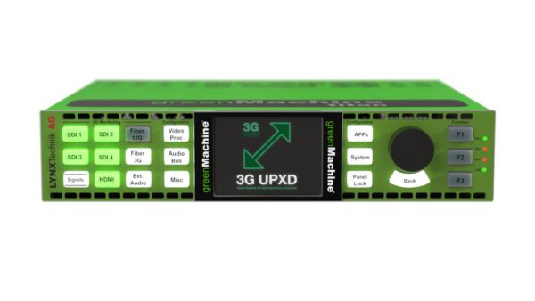 greenMachine UPXD 许可证包附带一个功能齐全的本地控制界面,用于迷你液晶显示屏,可对处理后的视频流进行图像预览和音频电平显示。它与 Lynx Centraal 完全兼容,可用于远程控制、状态监控和错误报告。