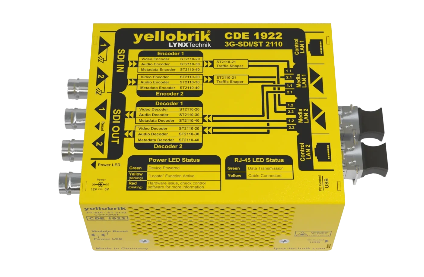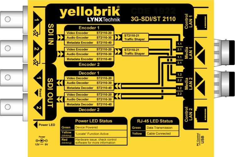 CDE 1922 是一款高性能的 3G-SDI 与 IP ST 2110 之间的转换器,能够同时处理多达四路高清视频流:2 路 3G-SDI 到 IP 以及 2 路 IP 到 3G-SDI。该转换器配备有 2 个 ST2110-30 音频编码器和 2 个 ST2110-30 音频解码器,可同时工作。每个编码器/解码器最多支持 8 个音频通道(L24,48kHz,4 组)。CDE 1922 可配备一对 10GbE 多模、单模或 RJ45 SFP 模块。