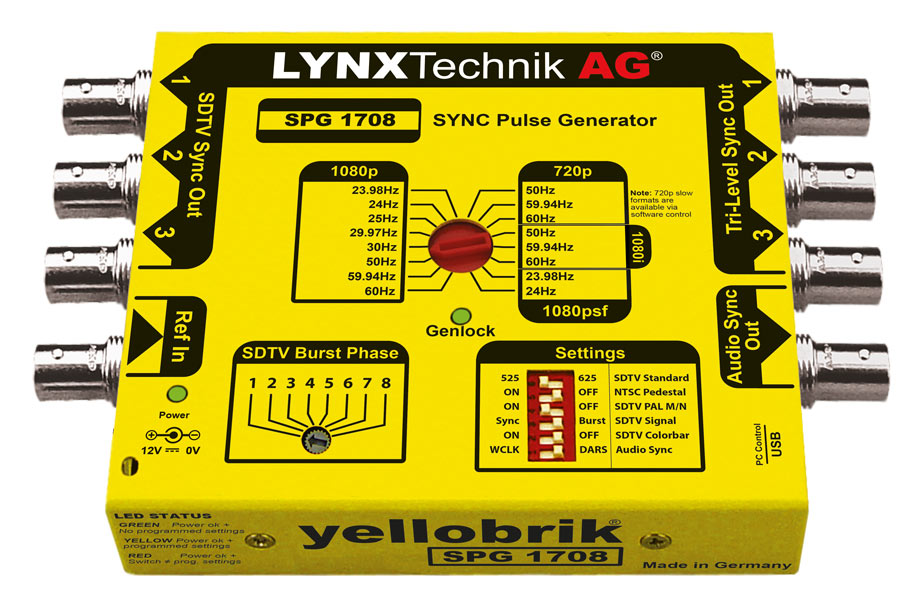 灵活的参考同步输入接受任何模拟视频同步格式包括 SD 两电平同步,黑场,彩色条和三电平 HD 同步。自动检测同步输入,并且兼容自适应。例如:1 路 SDTV 参考能被用于频率锁定 1 路 HD HDMI 输入。如果无参考信号,转换器执行标准异步 HDMI 到 SDI 的转换。一对模拟立体声输入能被嵌入到任意 AES 通道。音频输入既能是带可选全音阶电平的专业平衡音频,也可以是非平衡用户线性电平音频。HDMI 流中的任意音频能被嵌入到 SDI 输出,或者能被替换成外部音频信号。