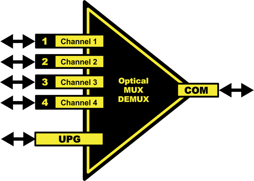 • 通过单芯光纤发送/接收 4 路信号
