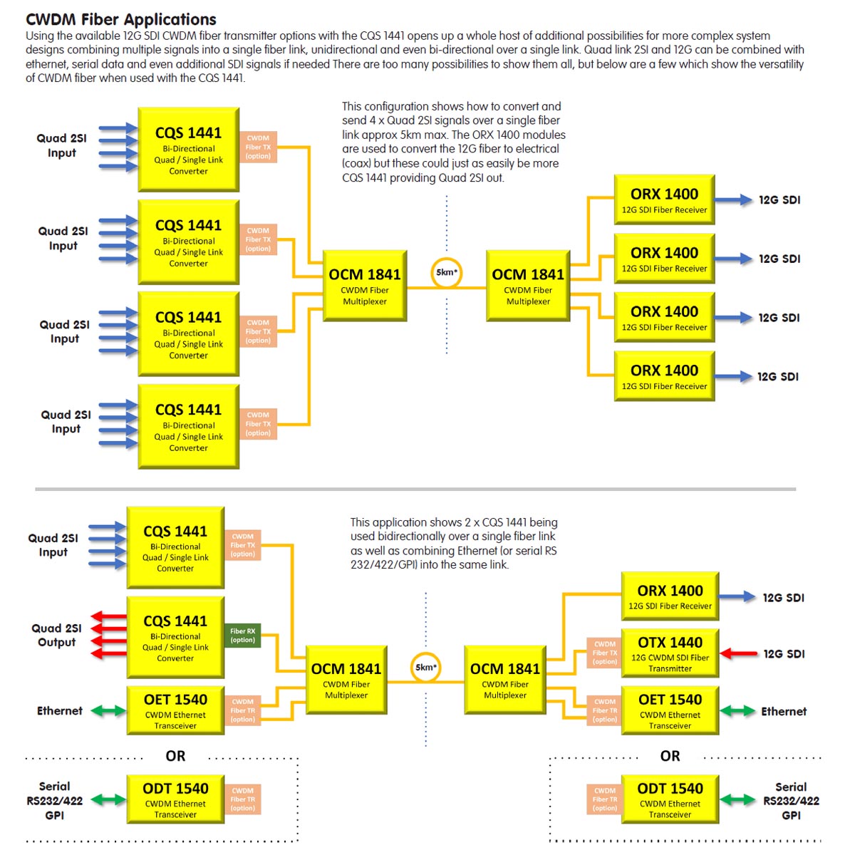 12G-SDI SFP 插槽为粗波分复用(CWDM)和非粗波分复用两种变体提供了可选的光纤连接。