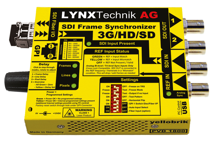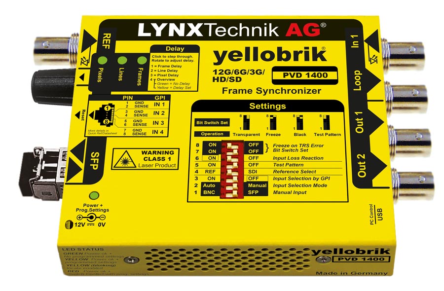 SD 同步输出可以是彩色条纹、黑场同步或仅同步,对于 NTSC 标准,可选择 7.5 IRE 底座,并且黑场相位可在 8 个增量中进行调节。同步发生器坚固耐用且温度稳定,作为参考源时精度可达 2ppm。所有用户控制均位于模块顶部,清晰标注且易于操作。这使得无需查阅手册即可轻松更改模块功能和配置。