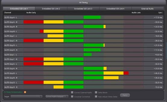例如,您可能拥有一台greenMachine,目前它被用作帧同步器、音频加嵌器或 HDR 处理器。您可以临时将这台机器切换为Testor AV来测试和测量系统中的音频延迟。保存测量结果,然后将机器切换回其主要应用,并应用保存的 AV 延迟校正。