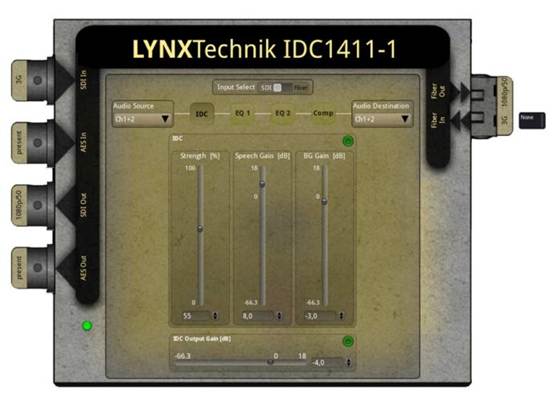 它不仅仅是一款降噪工具,还能全面控制背景和对话音量。除了基础音量调节功能外,它还配备两个均衡器和一个压缩器,可进行高级微调。音频输入可从 12G-SDI 输入流解嵌,或从外部 AES 输入获取。增强型对话音轨可嵌入回 SDI 输出流,或路由至专用 AES 输出。