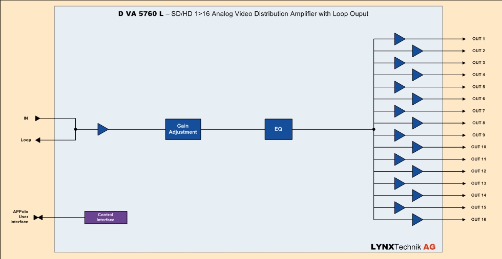 DVA 5760 L 是一款灵活且经济高效的解决方案,适用于高质量标清和高清模拟视频或同步信号的分配。该板卡具有一个输入端(带无源环通)和 16 个输出端。该板卡可用作三电平和双电平同步输入的同步分配放大器。通过集成的拨码开关提供本地控制功能。可调视频增益和均衡可用于系统校准。输入接口支持交流或直流差分耦合,并可根据需要选择是否启用输入钳位功能。此板卡非常适合要求极高的广播级和专业视频应用。与 Lynx Centraal 完全兼容,可实现远程控制、状态监测和错误报告。