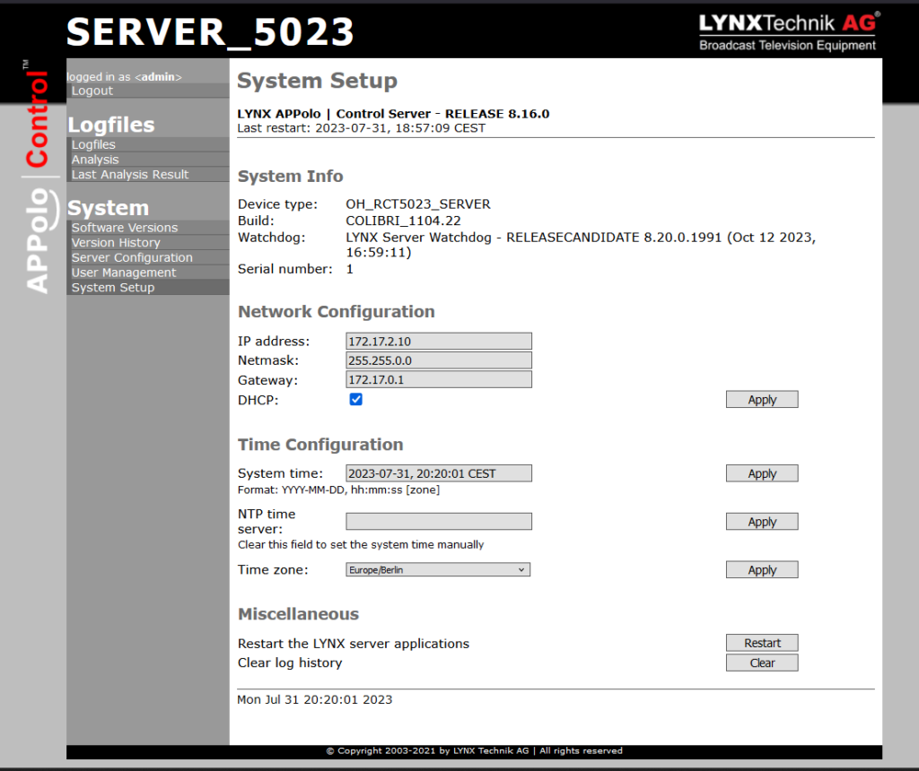 适用于 LYNX Technik产品的集成式配置、控制及监控解决方案